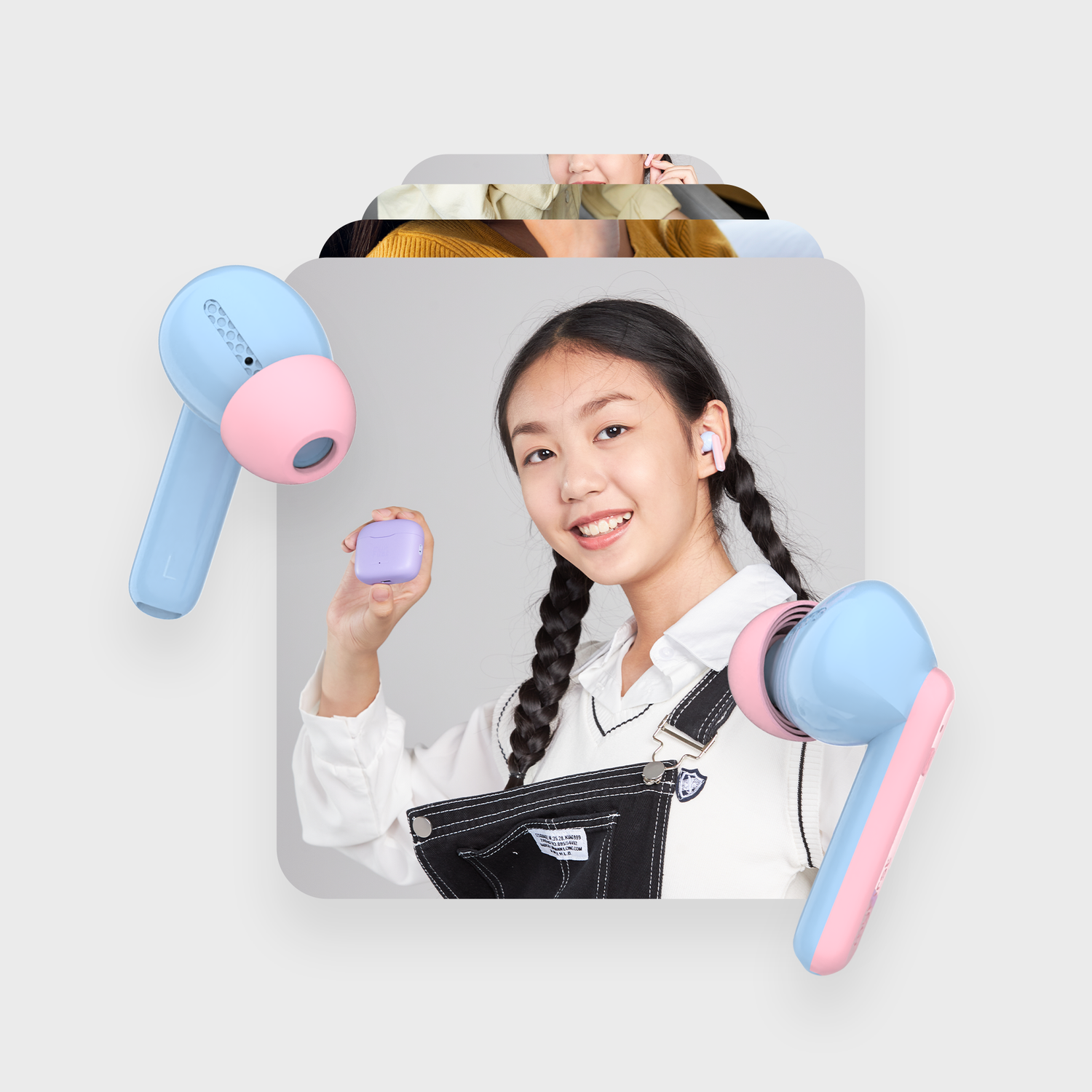 Memperkenalkan inovasi tercanggih – True Wireless Stereo (TWS) pertama di dunia yang direka khusus untuk kanak-kanak.