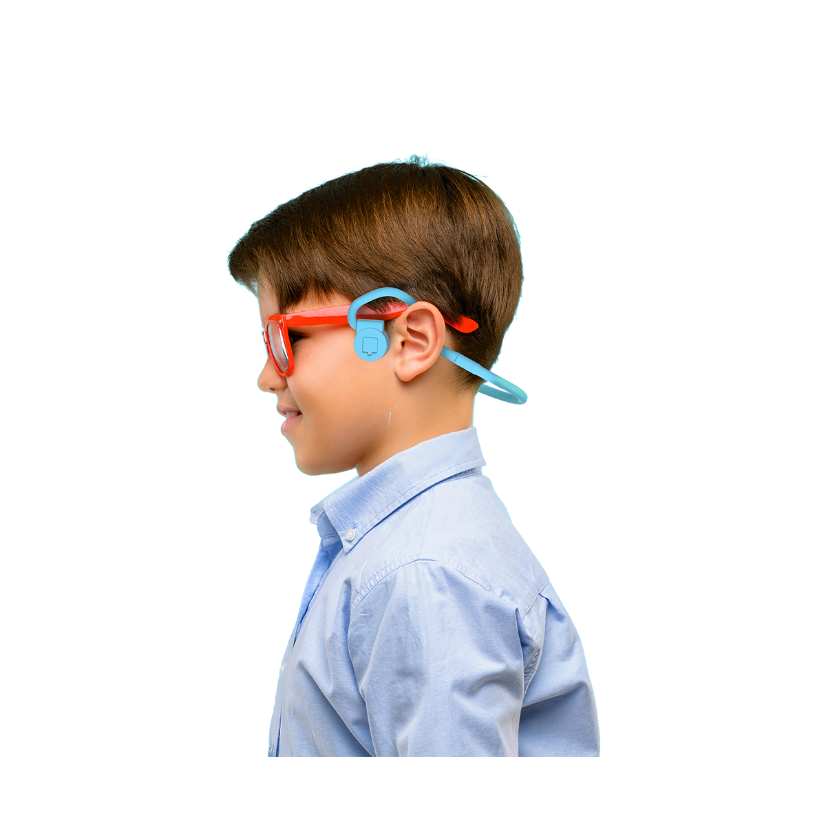 myFirst Headphones BC untuk kanak-kanak Dengan Reka Bentuk Telinga Terbuka. Direka Dengan Mengutamakan Keselamatan. Teknologi pengaliran tulang membolehkan muzik dihantar melalui tulang pipi. Sesuai untuk umur 4+.