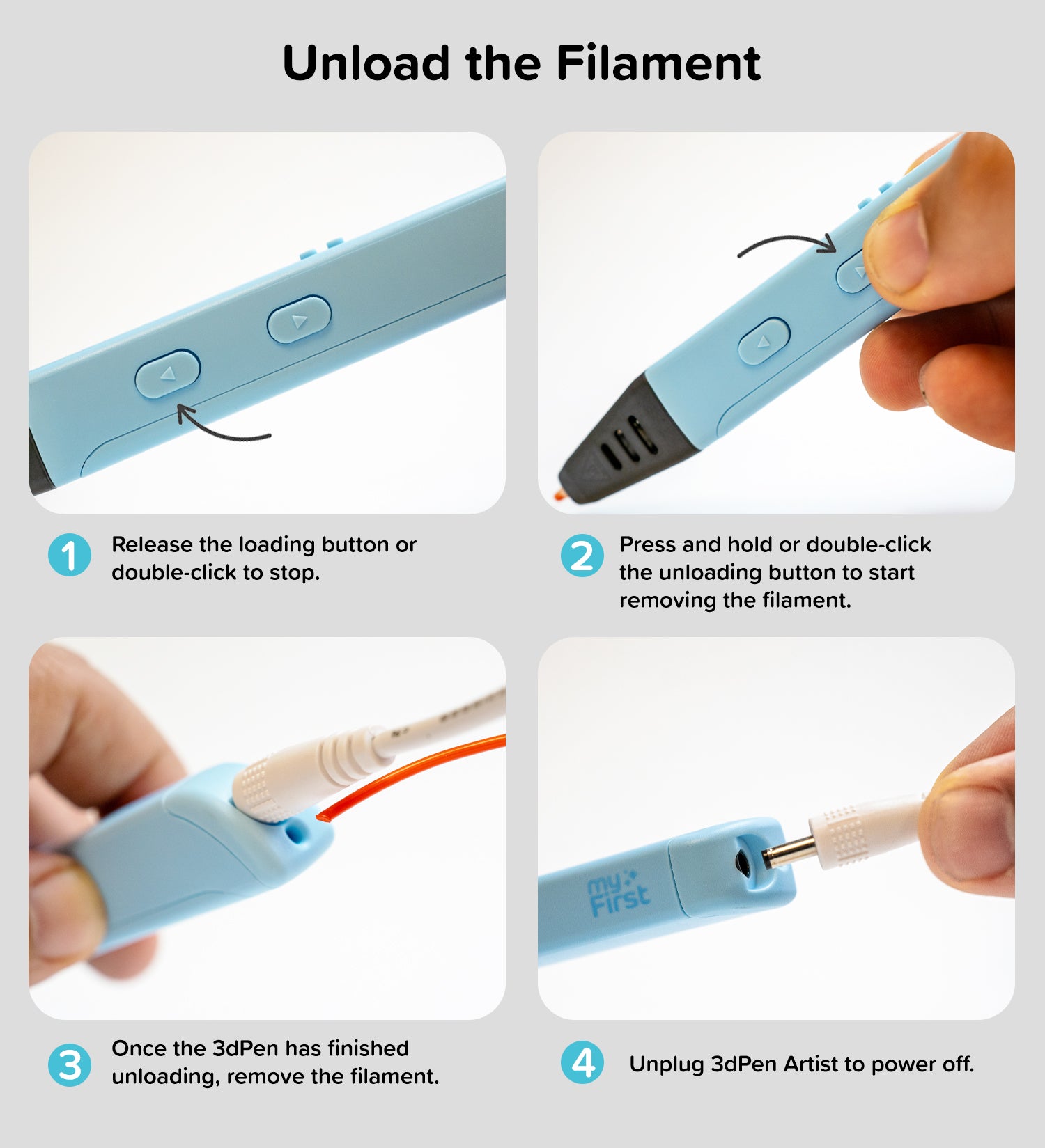 Step 3: Once the 3dPen has finished unloading, remove the filament.