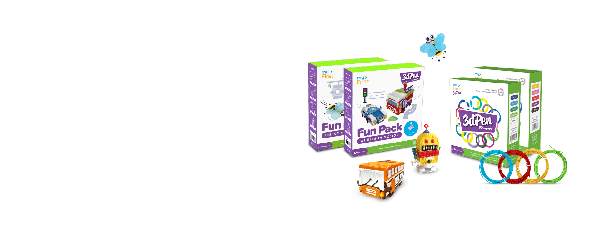 Our myFirst 3dPen Make comes with PCL filament that's non-toxic, odorless, and eco-friendly. This clever material melts at a low, child-safe temperature and your designs solidify in just 10 seconds, so there's less waiting and more playing!