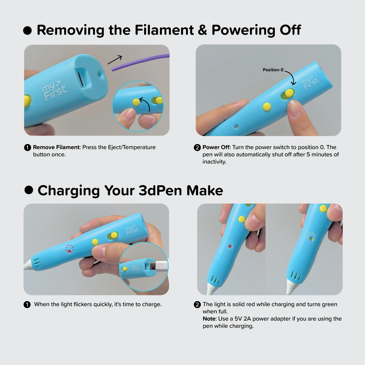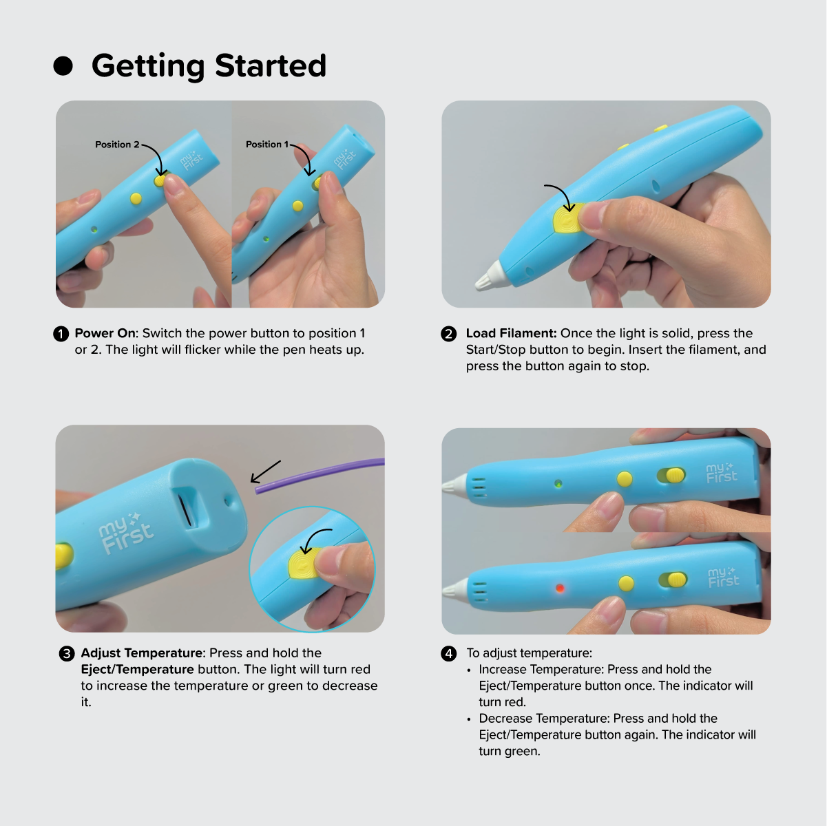 👐 Worried about safety? Fear not! The myFirst 3dPen Make is safe to touch. The inner device's heat stays where it belongs, keeping those little hands cool and comfortable. Plus, our filament is made from PCL materials that are gentle to the touch and harmless.