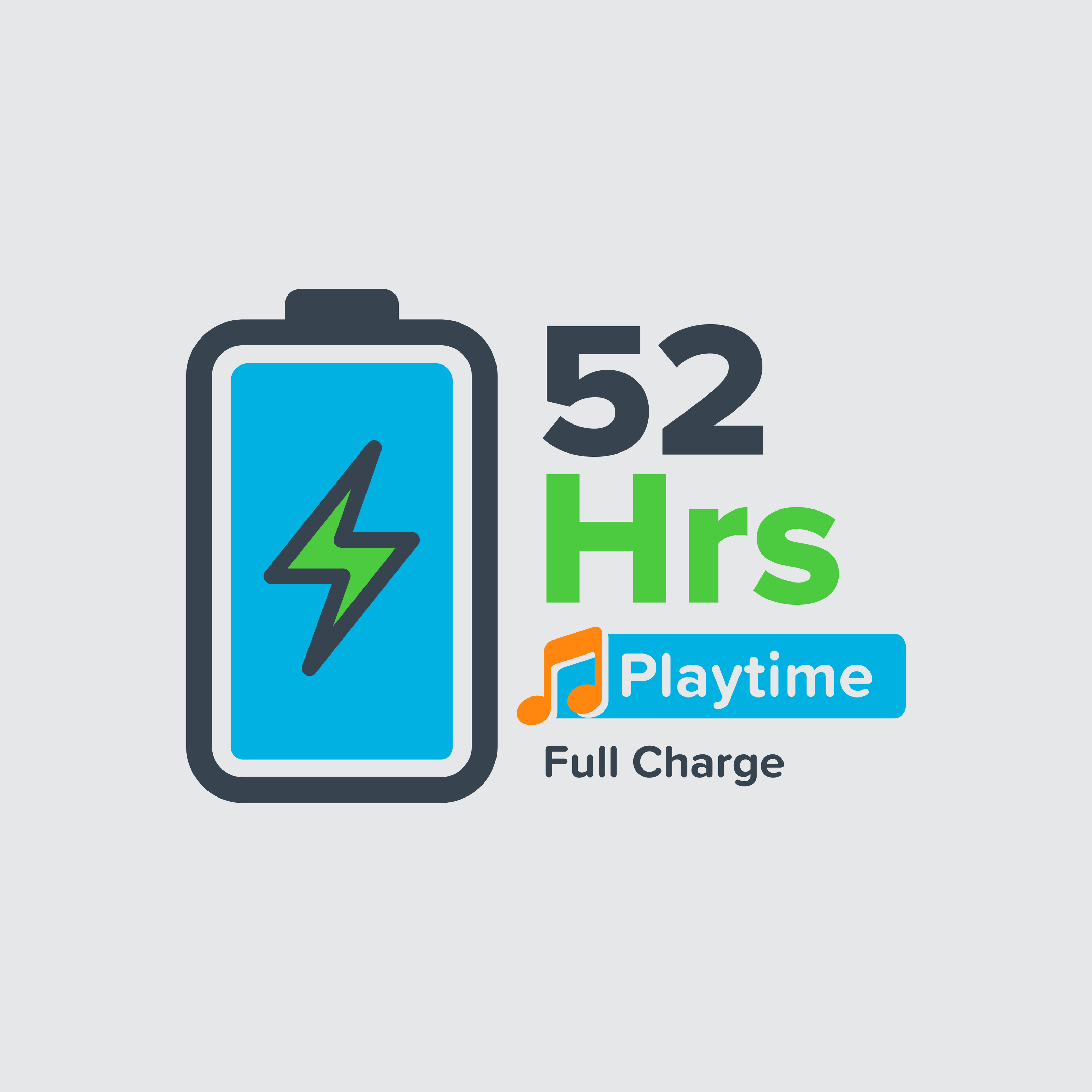 Enjoy playtime with up to 52 hours of music & calls on a full charge.