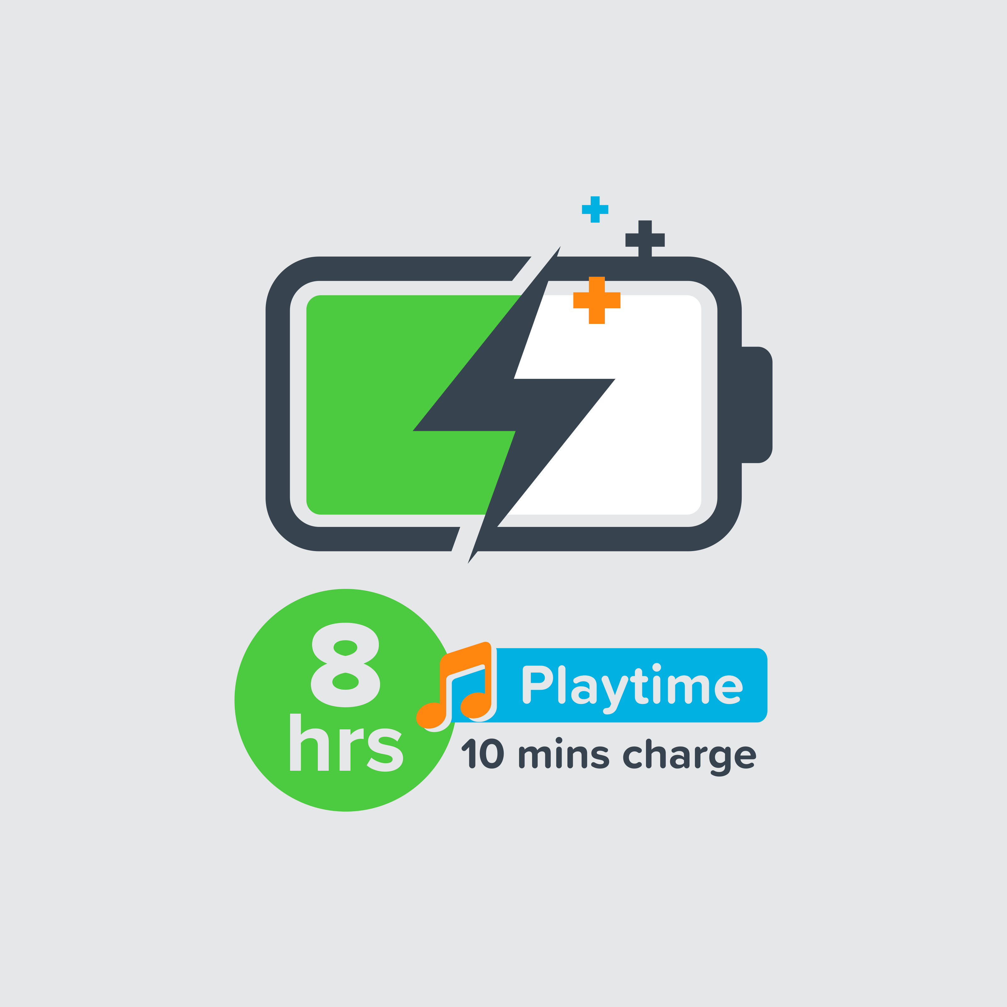 Get 8 hours of playtime from just a quick 10-minute charge!