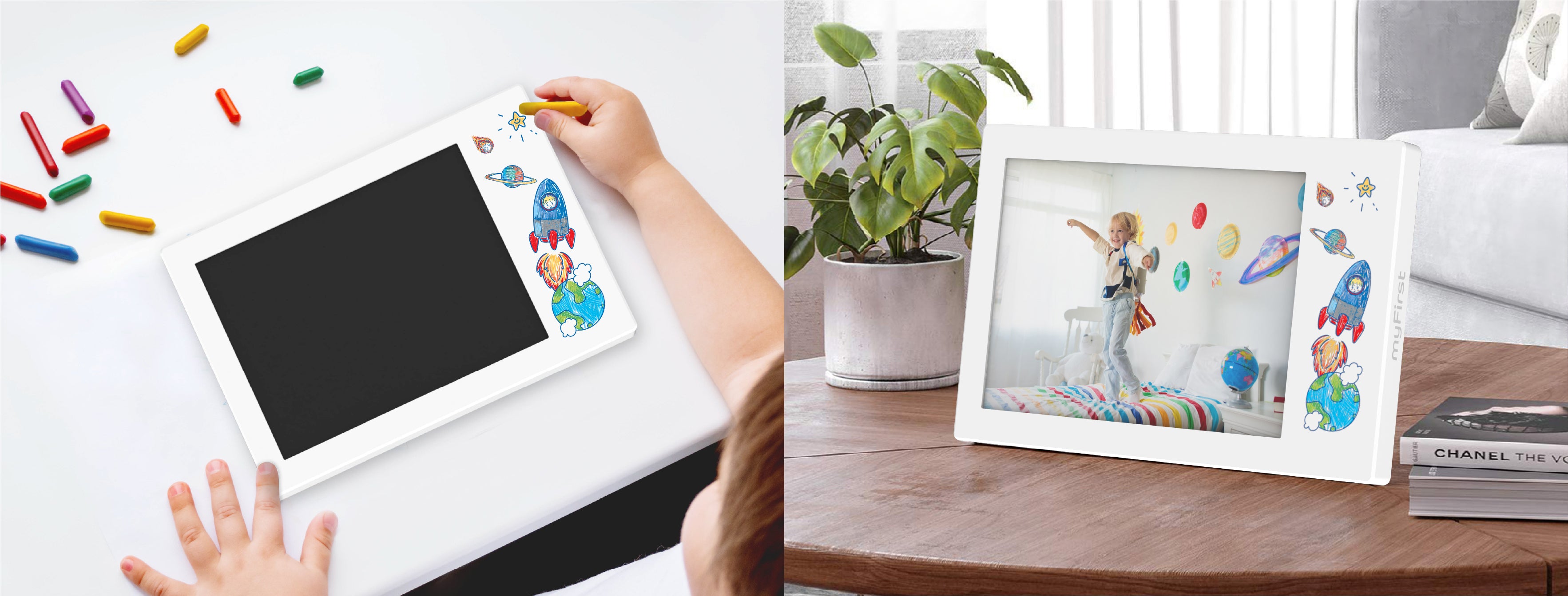 This unique present keeps on giving, as kids can continuously share their daily activities with the family by uploading photos and content. The myFirst Frame Doodle serves as a canvas for aspiring artists and those looking to add a personal touch to their surroundings, enabling them to bring their imaginative ideas to life in vibrant colors.